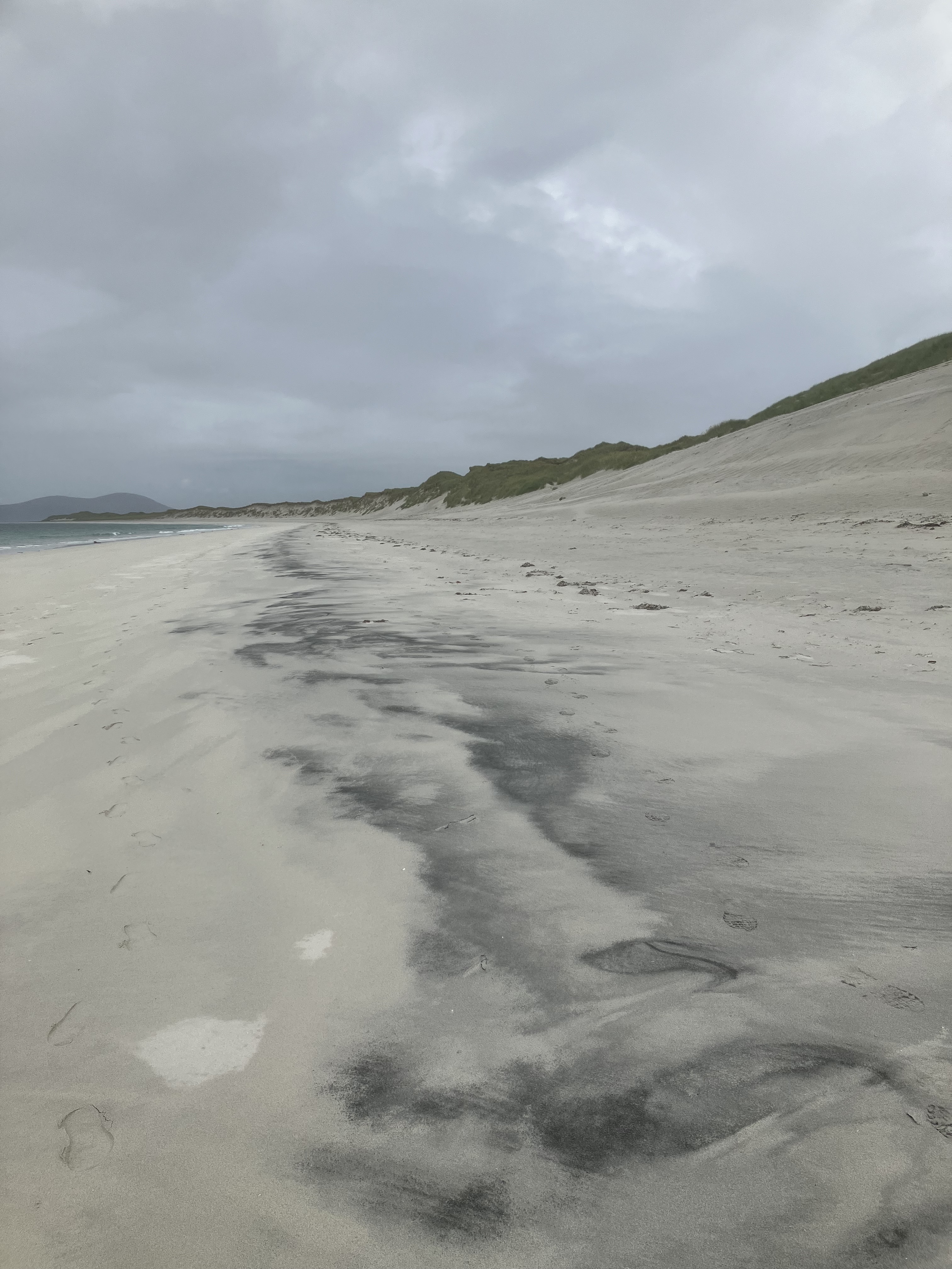 Being a liminal space, the beach is one of the best places to engage the senses. Sounds, sights, smells and so much more. Two years ago, I was at Kildonan Beach in South Uist and took the video below. The video shows the antics of a pair of birds right in the tufts of grass. You can also listen to the lap of water and the call of the nearby oystercatcher.