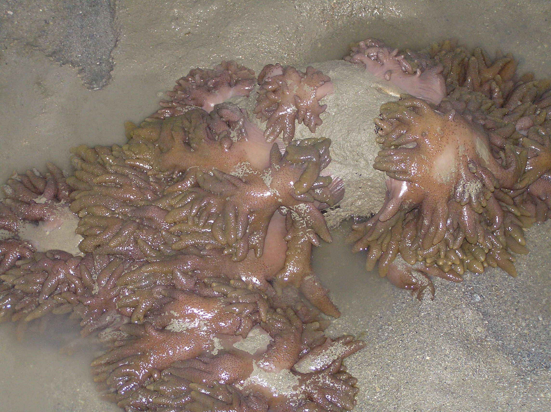Walking carefully across the coral reef at low tide is a wonderful experience. The low tide allowed us to discover a whole different world that we would have had to swim/snorkel/dive otherwise. Like the starfish wriggling in the sand or the sea anemone attached to the rocks. And the sea grapes that look very similar albeit tiny versions of grapes.